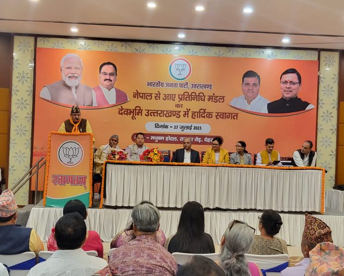 गौरतलब है कि नेपाल से पहुंचे प्रतिनिधिमंडल की भारत में छह दिवसीय यात्रा पर है और पांच सदस्यीय प्रतिनिधिमंडल दो दिवसीय दौरे पर उत्तराखंड पहुंचा है। इस अवसर पर कैबिनेट मंत्री गणेश जोशी ने कहा नेपाल और भारत मित्र राष्ट्र हैं। नेपाल के साथ हमारा रोटी बेटी का रिश्ता है। उन्होंने कहा नेपाल और भारत के बीच हमारे सांस्कृतिक और धार्मिक रिश्ते प्राचीन और ऐतिहासिक के साथ-साथ सांस्कृतिक भी रहे हैं।