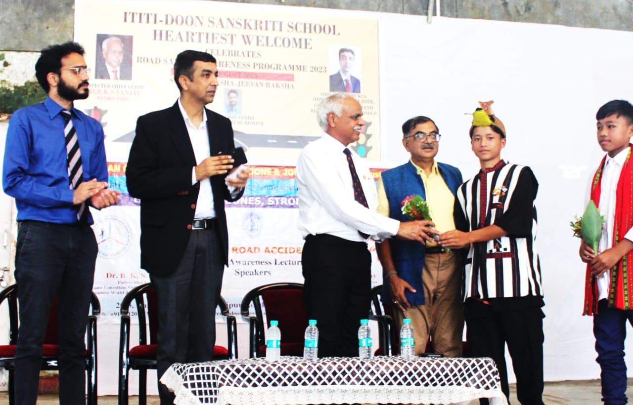कार्यक्रम के मुख्य अतिथि डॉ. बी. के. एस. संजय ने कहा कि ओवरस्पीडिंग, ओवरटेकिंग, ओवरलोडिंग, शराब का सेवन एवं वाहन चलाते समय मोबाइल फोन का उपयोग सडक दुर्घटनाओं के मुख्य कारण हैं। उन्होंने यह भी बताया कि 90% दुर्घटनाएं वाहन चालकों की लापरवाही के कारण होती हैं। सड़क पर चलने वाले हर व्यक्ति को सड़क यातायात के नियमों का पालन करना चाहिए। इंडिया एवं इंटरनेशनल बुक रिकॉर्ड होल्डर ऑर्थोपीडिक सर्जन डॉ. गौरव संजय ने कहा कि दुपहिया वाहन में हेलमेट का और चार पहिया वाहन में सीट बेल्ट का प्रयोग करना चाहिए। हेलमेट आई.एस.आई. प्रमाणित होना चाहिए और हेलमेट पहनते वक्त स्ट्रीप हमेशा लगानी चाहिए।