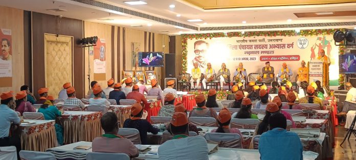 इस दौरान वर्ग संयोजक सुरेश भट्ट ने कहा कि देश दुनिया की सबसे बड़ी केडर बेस पार्टी ने 3 से 303 सांसदों और 11 सदस्यों से 17 करोड़ सदस्यों तक की यात्रा अनुशासन की बदौलत तय की है l यह सब सीखने की प्रवृत्ति हम सब कार्यकर्ताओं में होनी चाहिएl साथ ही प्रदेश के कैबिनेट एवं पंचायती राज मंत्री सतपाल महाराज ने कहा कि प्रदेश सरकार द्वारा चलाए जा रहे पंचायती राज विकास कार्य निरंतर जारी है उनका प्रचार प्रसार करना हमारा नैतिक दायित्व है हमारी सरकार द्वारा जिला पंचायत में शैक्षिक योग्यता निश्चित करने से कार्य करने की क्षमता बढ़ रही है । हमारी सरकार के द्वारा निर्णय लिया गया है कि दो बच्चों से अधिक होने पर पंचायत चुनाव नहीं लड़ सकते हैं सरकार के द्वारा प्रदेश भर में 1200 पंचायत भवनों का निर्माण सीएससी सेंटर एवं 1000 से अधिक पंचायत भवनों को कंप्यूटरीकृत किया गया है । अमृत काल के महोत्सव में अमृत सरोवर अमृत वाटिका निर्माण कर वीरों का वंदन किया जा रहा है। जिला अध्यक्ष संदीप गोयल ने आए हुए सभी अतिथियों का स्वागत करते हुए कहा कि इस वर्ग में अब जो 2 दिनों तक मंथन होगा और उससे जो अमृत निकलेगा उससे सभी जिला पंचायत सदस्य उस अमृत को कल्याणकारी योजनाओं के माध्यम से जनता में ले जाने का काम करेंगे