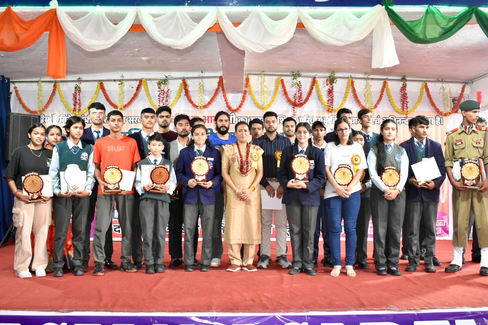 इस अवसर पर जिलाध्यक्ष श्री गिरीश जोशी जी,पद्मश्री से समानित श्रीमती बसंती देवी जी,जिला महामंत्री श्री राकेश देवलाल जी,युवा मोर्चा जिला उपाध्यक्ष श्री दीपक लोहिया जी,पूर्व मैनेजर इफ्को श्री राम सिंह जी सहित विद्यालय के अध्यापकगण ,वरिष्ठजन और छात्र छात्राएं उपस्थित रहे।
