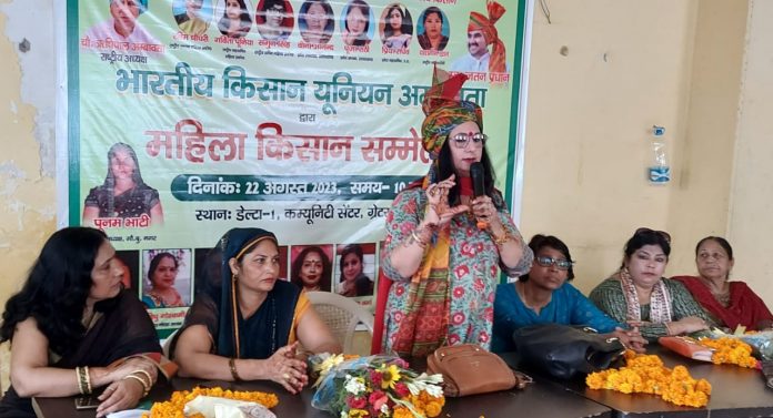 रुड़की।भारतीय किसान यूनियन (अंबावत) महिला विंग की राष्ट्रीय अध्यक्ष श्रीमती रश्मि चौधरी ने कहा कि महिलाओं को निडर होकर अपने अधिकारों की लड़ाई लड़नी होगी।महिलाएं आज हर क्षेत्र में पुरुषों से आगे हैं।उक्त् विचार उन्होंने ग्रेटर नोएडा के डेल्टा वन कम्युनिटी सेंटर में हुए महिला किसान सम्मेलन में बतौर मुख्य अतिथि के रूप में बोलते हुए व्यक्त किये।सम्मेलन को संबोधित करते हुए श्रीमती रश्मि चौधरी ने कहा कि महिलाओं को निडर होकर अपने अधिकारों को पाने के लिए आगे आना होगा।महिलाएं आज प्रत्येक क्षेत्र में पुरुषों से आगे हैं।देश की सुरक्षा से लेकर देश का नेतृत्व करने वाली महिलाएं आज किसानों के संगठन में भी अपनी भागीदारी निभा रही हैं।