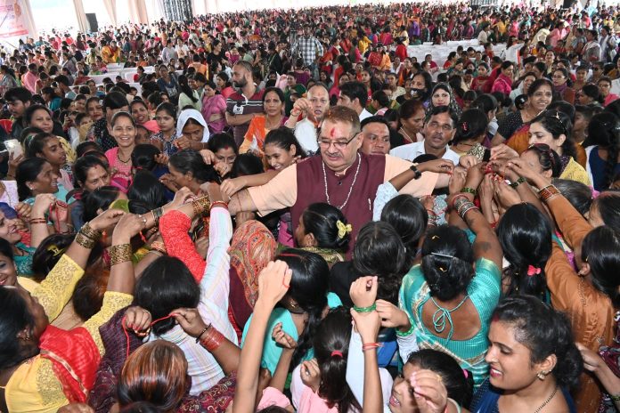 देहरादून, 27 अगस्त। मसूरी विधानसभा में प्रतिवर्ष की भांति इस वर्ष भी रक्षाबंधन समारोह बड़े ही धूमधाम और हर्षोल्लास के साथ मनाया गया। देहरादून के हाथीबड़कला स्थित सर्वे स्टेडियम में आयोजित ‘रक्षाबंधन समारोह 2023’ का आयोजन किया गया। जिसमे 15 हजार से अधिक बहनों ने कार्यक्रम में प्रतिभाग किया। मंत्री गणेश जोशी ने हजारों की संख्या में पहुंची बहनों पर पुष्प वर्षा करते हुए बहनों का स्वागत एवं अभिनंदन किया।