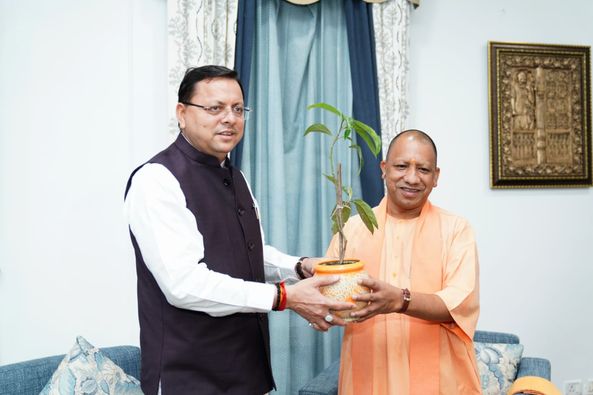 सीएम धामी से आज देर शाम मुख्यमंत्री आवास में सीएम योगी आदित्यनाथ ने भेंट की।