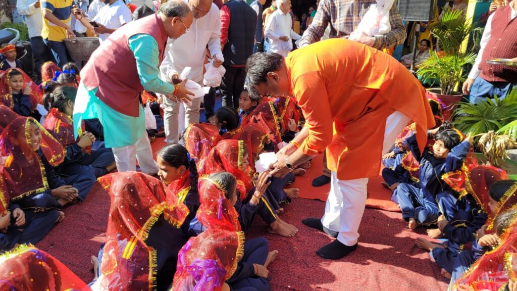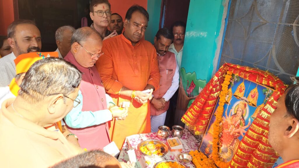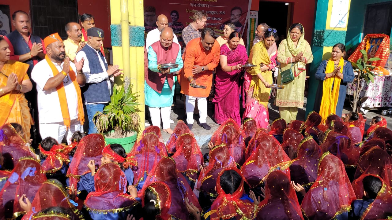 देहरादून- भारतीय जनता पार्टी महानगर अध्यक्ष सिद्धार्थ उमेश अग्रवाल एवं महानगर पदाधिकारी के नेतृत्व में नवरात्रि महापर्व में मां शक्ति के स्वरूप के रूप में कन्याओं का पूजन कार्यक्रम प्रत्येक विधानसभा में किया जा रहे हैं आज रायपुर विधानसभा के प्राथमिक विद्यालय में पूजन कार्यक्रम किया गया।
