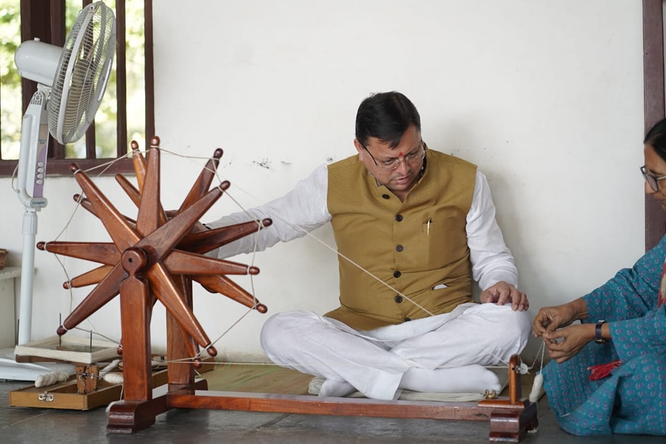 अहमदाबाद- मुख्यमंत्री पुष्कर सिंह धामी ने आज अहमदाबाद स्थित गांधी आश्रम पहुँचकर राष्ट्रपिता महात्मा गांधी जी को अपनी श्रद्धांजलि अर्पित की। इस दौरान उन्होंने कुछ देर चरखा भी चलाया और अपने अनुभव भी यहां रखी विजिटर बुक में साझा किए।