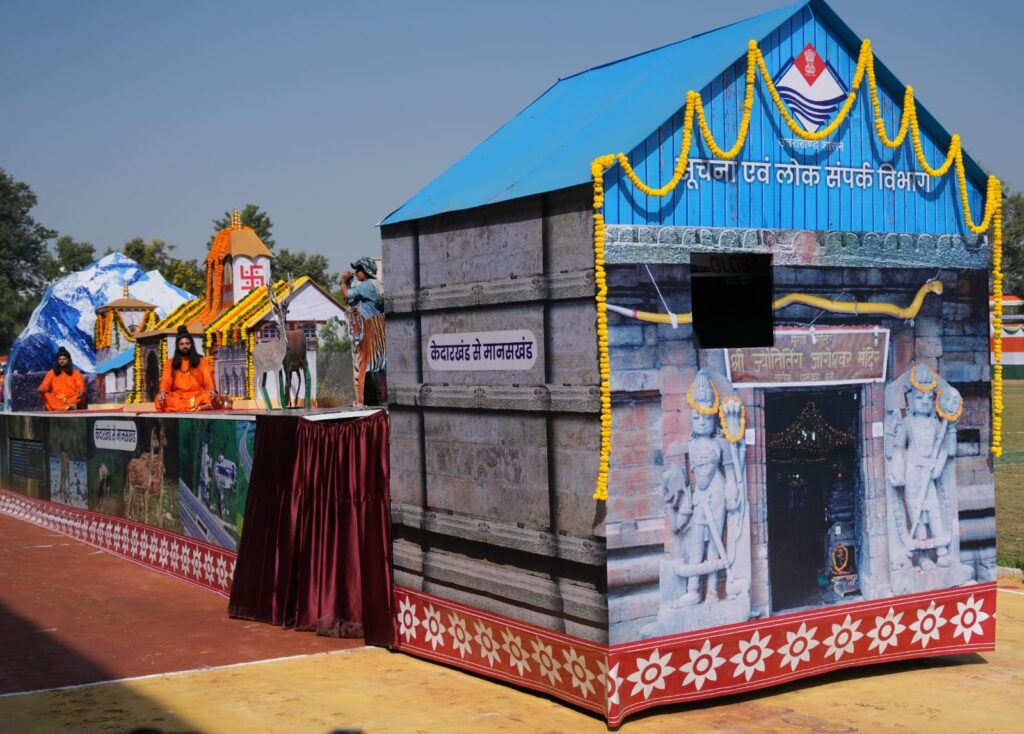 देहरादून- उत्तराखण्ड राज्य स्थापना दिवस के अवसर पर पुलिस लाइन देहरादून में आयोजित कार्यक्रम में राष्ट्रपति द्रोपदी मुर्मु ने मुख्य अतिथि के रुप में प्रतिभाग किया। इस अवसर पर राज्यपाल लेफ्टिनेंट जनरल गुरमीत सिंह (से नि), मुख्यमंत्री पुष्कर सिंह धामी सहित अन्य गणमान्य लोग उपस्थित रहे। इस अवसर पर सूचना एवं लोक सम्पर्क विभाग द्वारा प्रदर्शित ‘‘केदारखण्ड से मानसखण्ड’’ झांकी के माध्यम से राज्य के प्रमुख धार्मिक स्थलों, समृद्ध सांस्कृतिक विरासत, जैव विविधता, हिमाच्छादित उच्च पर्वत श्रृंखलाओं की समग्रता से परिचित कराने का प्रयास किया गया।
