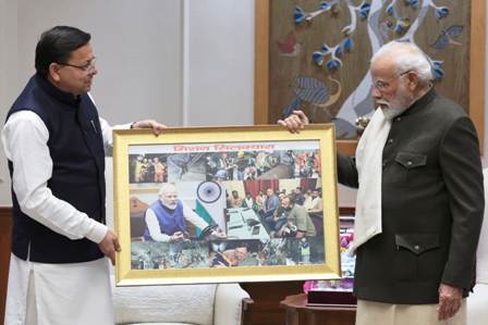देहरादून। मुख्यमंत्री पुष्कर सिंह धामी ने नई दिल्ली में रविवार सुबह प्रधानमंत्री नरेंद्र मोदी से मुलाकात की इस दौरान मुख्यमंत्री ने 8 दिसंबर को देहरादून में आयोजित होने वाले ग्लोबल इन्वेस्टर्स समिट में आने के लिए प्रधानमंत्री को निमंत्रण दिया। मुलाकात के दौरान मुख्यमंत्री पुष्कर सिंह धामी ने प्रधानमंत्री को गंगीलीहाट के प्रसिद्ध मां हाट कालिका मंदिर की मूर्ति भी भेंट की। उन्हांेने पीएम नरेन्द्र मोदी को उत्तराखण्ड के विकास की रूपरेखा तैयार करने की जानकारी भी दी। उन्होंने पीएम मोदी को उत्तराखण्ड के विकास में हर संभव सहायता करने के लिए भी आभार जताया। साथ ही मुख्यमंत्री ने प्रधानमंत्री मोदी का सिल्क्यारा सुरंग में फंसे श्रमिकों को निकलने के लिए दिए गए मार्गदर्शन और सहयोग के लिए उत्तराखण्ड वासियों की ओर से आभार व्यक्त किया। प्रधानमंत्री नरेंद्र मोदी को सिलक्यारा टनल से निकल गए श्रमिकों की फोटो भेंट की। इस फोटो में प्रधानमंत्री नरेंद्र मोदी श्रमिकों से टेलीफोन पर बात कर रहे थे। मुख्यमंत्री ने श्रमिकों की हौसला अफजाही के लिए भी पीएम नरेन्द्र मोदी का आभार जताया।