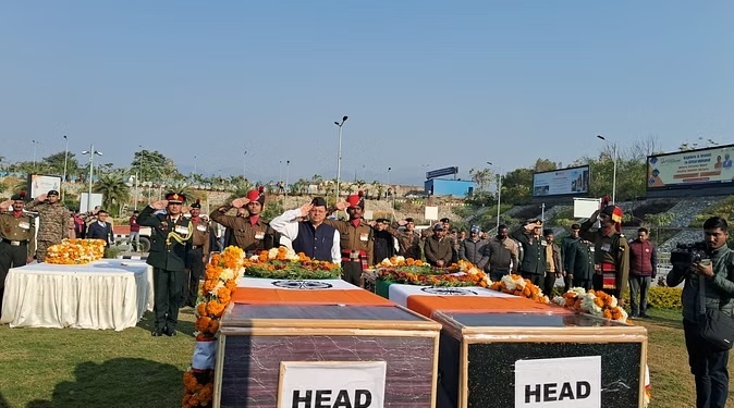 यहां सेना ने दोनों शहीदों को गार्ड ऑफ ऑनर दिया। इस अवसर पर एयरपोर्ट पहंुचकर सीएम धामी ने शहीदों को श्रद्धांजलि अर्पित की। सीएम ने शहीदों के परिजनों को ढाढ़स बंधाया। इसके बाद दोनों के पार्थिव शरीरों को सेना के हेलीकॉप्टर से उनके घर भेजा गया।