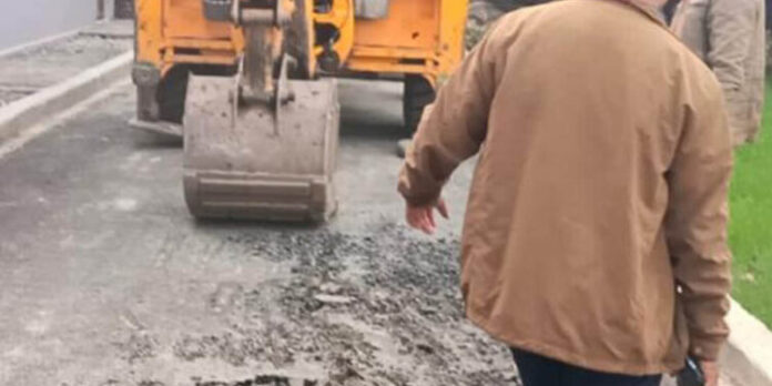 लापरवाही से बनाई सड़क जेसीबी से तोड़ी