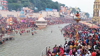 देहरादून। मान्यता अनुसार जब भगवान सूर्य मकर राशि में प्रवेश करते हैं। तब मकर संक्रांति का पर्व मनाया जाता है। गंगा स्नान करने के बाद तिल, खिचड़ी, गर्म कंबल आदि का दान किया जाता है। मकर संक्रांति पर गंगा स्नान के लिए देव डोलियों के साथ श्रद्धालुओं का सैलाब उमड़ पड़ा। स्नान करने के लिए यूपी, पंजाब, दिल्ली सहित कई राज्यों से श्रद्धालु स्नान करने के लिए पहुंचे। सुबह सात बजे से ही हरकी पैड़ी पर स्नान का क्रम शुरू हो गया था। लेकिन गंगा घाटों पर स्नान करने वाले श्रद्धालुओं की संख्या काफी कम दिखाई दी।