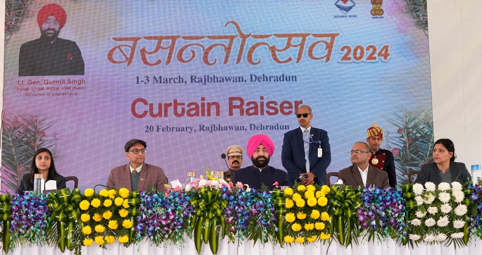 देहरादून- राजभवन में वसंतोत्सव-2024 का ‘कर्टेन रेजर’ आयोजित किया गया। राज्यपाल लेफ्टिनेंट जनरल गुरमीत सिंह (से नि) ने इस वर्ष 01 मार्च से राजभवन में शुरू हो रहे तीन दिवसीय वसंतोत्सव-2024 के बारे में विस्तृत जानकारी दी। उन्होंने बताया कि इस वर्ष विशेष पोस्टल कवर के लिए ‘‘थुनेर’’ का चयन किया गया है। 01 मार्च को दोपहर 1.00 बजे से सायं 6.00 बजे तक तथा 02 व 03 मार्च को प्रातः 09.00 बजे से सायं 6.00 बजे तक वसंतोत्सव/पुष्प प्रदर्शनी जनसामान्य के लिए निःशुल्क खुली रहेगी।