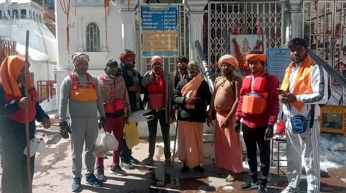 शिवरात्रि आठ मार्च को बर्फबारी के बीच गंगाजल लेने पहुंचे डाक कांवड़िए