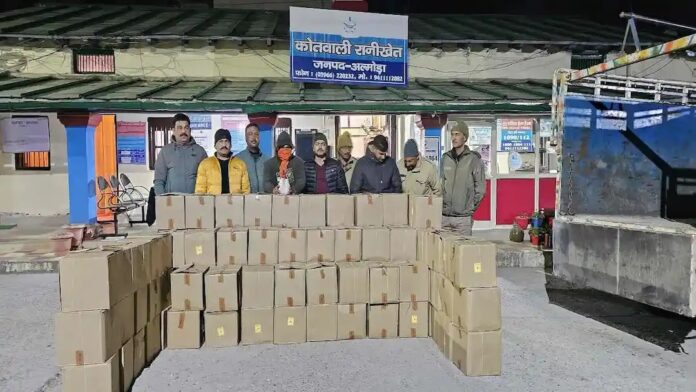 अल्मोड़ा। रानीखेत तहसील के ऐना गांव और बगवाली पोखर के बीच नाकेबंदी के दौरान पुलिस ने एक वाहन से 120 पेटी अवैध शराब बरामद की है। जिसकी कीमत पांच लाख रूपए बताई जा रही है।। पुलिस ने पकड़े गए आरोपी के खिलाफ मामला दर्ज कर लिया है।