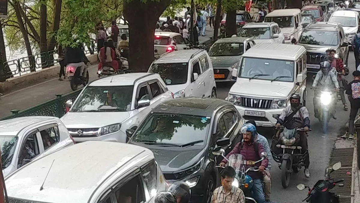 नैनीताल। सरोवर नगरी में वीकेंड पर सैलानी उमड़े तो यहां होटल व गेस्ट हाउस के साथ वाहनों से पार्किंग स्थल भी पैक हो गए। रविवार को पर्यटक वाहनों की भीड़ से यातायात व्यवस्था चरमराने से यहां माल रोड समेत अन्य सड़कों पर वाहन रेंगते नजर आए।जाम का आलम यह रहा कि पांच मिनट का माल रोड का सफर आधे घंटे से भी अधिक समय में बमुश्किल पूरा हुआ। इस दौरान मल्लीताल से लेकर बारापत्थर तक वाहनों की लंबी कतार लगी रही जबकि दुपहिया वाहनों के सैकड़ों की संख्या में बेरोकटोक आवागमन से यातायात व्यवस्था में व्यवधान पैदा हुआ।