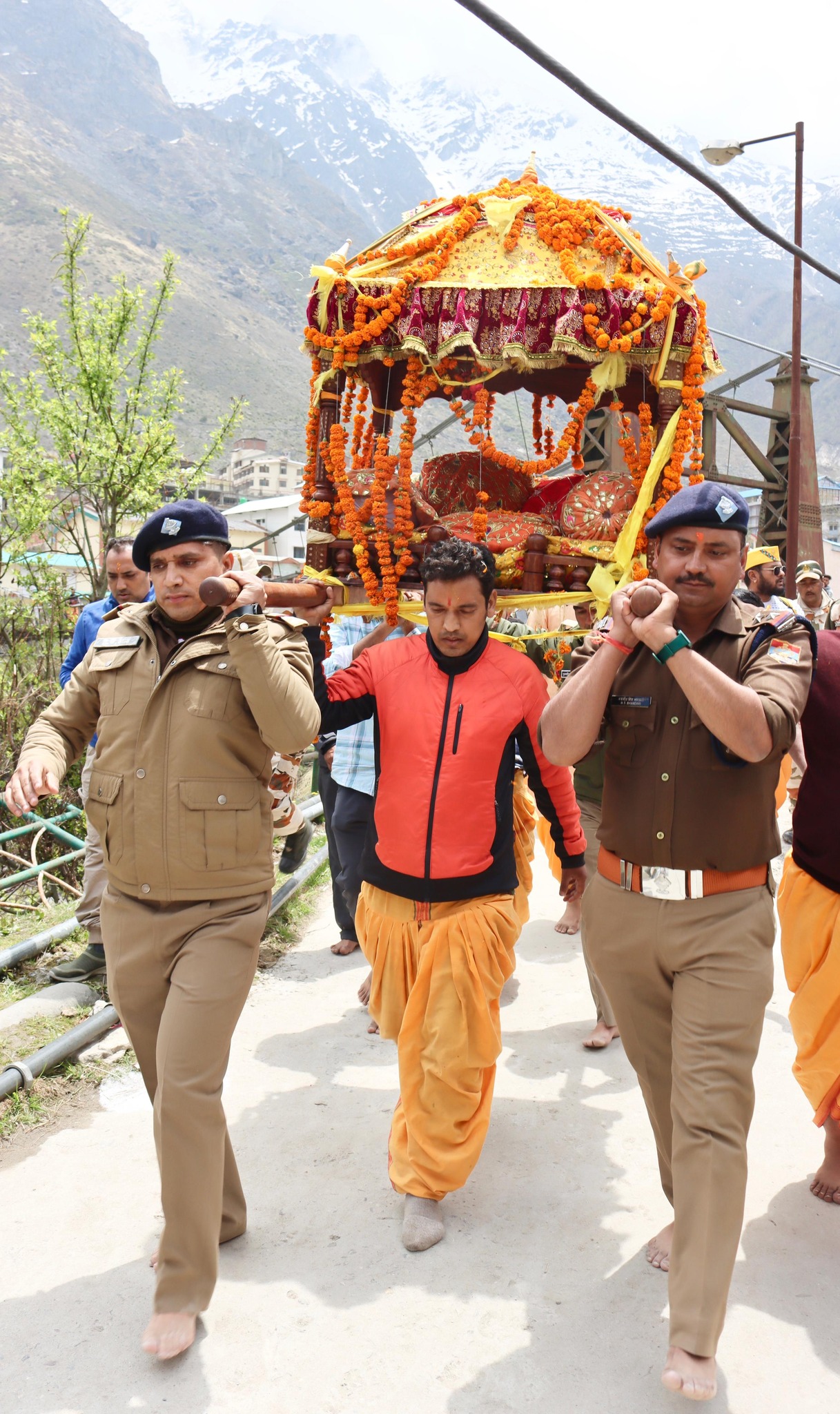 चमोली- नारायण के प्रतिनिधि उद्धव जी एवं खजांची कुबेर जी की डोलियां योगध्यान बद्री पांडुकेश्वर से सकुशल पहुँची श्री बद्रीनाथ धाम। आज दिनांक 11 मई 2024 को योगध्यान बद्री मंदिर पांडुकेश्वर में पूजा-अर्चना के पश्चात भगवान बद्री विशाल की उत्सव डोली आदि गुरु शंकराचार्य जी की गद्दी, गाडू घड़ा से गाडू घड़ा तेल कलश, रावल जी सहित देवताओं के खजांची कुबेर जी एवं भगवान के सखा उद्धव जी की डोलियां योग ध्यान बद्री मंदिर पांडुकेश्वर से आर्मी बैंड की धुन, जय बद्री विशाल के जयकारों एवं पूर्ण पुलिस सुरक्षा व्यवस्था के साथ सुरक्षित श्री बद्रीनाथ धाम में पहुँच गयी हैं।