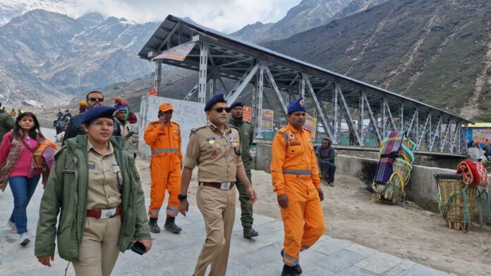 रुद्रप्रयाग -सुरक्षा व्यवस्थाओं व यात्रा व्यवस्थाओं का जायजा लेकर दिए गए आवश्यक दिशा-निर्देश,रविवार को अभिनव कुमार पुलिस महानिदेशक उत्तराखण्ड  श्री केदारनाथ धाम की सुरक्षा व्यवस्थाओं का जायजा लेने हेतु पहुंचे। इस दौरान उनके द्वारा ड्यूटी पर नियुक्त पुलिस बल को श्रद्धालुओं के साथ सौम्य व्यवहार करने के निर्देश दिए गए। केदारनाथ धाम मन्दिर परिसर में 50 मीटर की दूरी पर वीडियोग्राफी एवं सोशल मीडिया रील्स बनाने वालों पर सख्ती करने के निर्देश दिए गए ताकि मन्दिर दर्शन के लिए आये श्रद्धालुओं को दिक्कत न हो। श्रद्धालुओं की सुरक्षा सर्वोपरि है ऐसे में इस बात का ध्यान अवश्य रहे कि किसी भी प्वाइंट पर अनावश्यक भीड़ न हो। भीड़ प्रबन्धन एवं प्रभावी लाइन व्यवस्था बनाए रखने के निर्देश दिए गए। केदारनाथ धाम में नियुक्त पुलिस बल बल के साथ संवाद स्थापित कर व उनकी ब्रीफिंग कर आवश्यक दिशा-निर्देश दिए गए। सभी को पूर्ण निष्ठा के साथ कर्तव्य निर्वहन करने के निर्देश दिए गए।