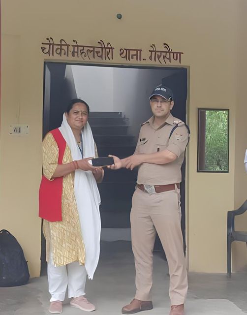आज दिनांक 25/05/24 को श्रीमती बसंती देवी (पीएलबी मेंबर गैरसैंण) द्वारा चौकी प्रभारी मेहलचौरी उ0नि0 श्री सम्पूर्णानन्द जुयाल को सूचना दी कि मेहलचौरी से धारापानी जाते समय उनका मोबाइल फोन रास्ते में कहीं गिर गया है, मेरे द्वारा काफी ढूँढखोज की गयी किन्तु मोबाइल का कुछ पता नहीं चल पाया। महोदय मैं वर्तमान समय में जिला विधिक सेवा प्राधिकरण गोपेश्वर, बैंक सखी व पीएलबी मेंबर गैरसैंण में कार्यरत हूँ तथा मोबाइल में कुछ गोपनीय रिकॉर्ड व मेरे कार्यों से संबंधित दस्तावेज मौजूद है, जिनका गलत प्रयोग किया जा सकता है। सूचना पर त्वरित कार्यवाही करते हुए चौकी प्रभारी मेहलचौरी द्वारा सर्विलांस सैल की सहायता से उक्त मोबाइल को कुछ ही घंटे के भीतर सिलंगी खाल मैखोली के पास से सकुशल बरामद कर श्रीमती बसंती देवी के सुपुर्द किया गया। अपना खोया मोबाइल वापस पाकर महिला द्वारा पुलिस की त्वरित कार्यवाही की सराहना करते हुए चमोली पुलिस का धन्यवाद ज्ञापित किया गया।