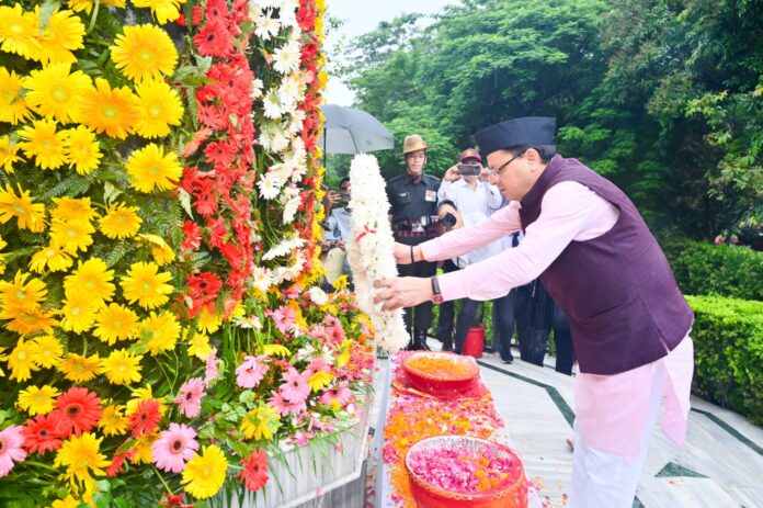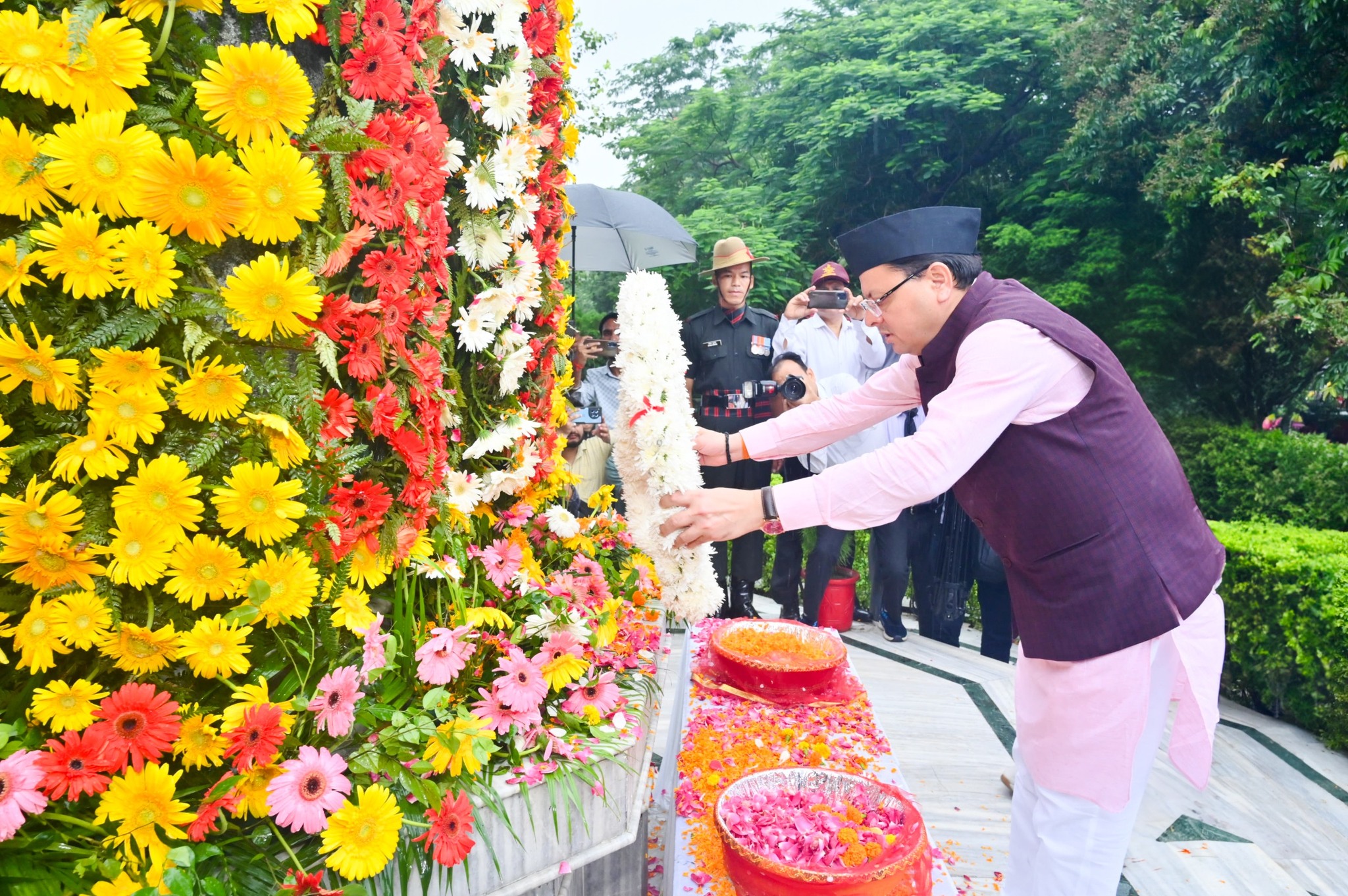 मुख्यमंत्री धामी ने कारगिल विजय दिवस (शौर्य दिवस) पर गांधी पार्क में आयोजित कार्यक्रम में शहीद स्मारक पर कारगिल शहीदों को श्रद्धांजलि अर्पित की
