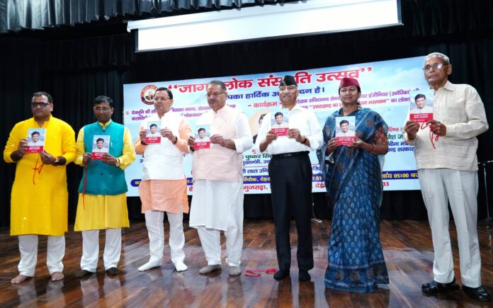 देहरादून -मुख्यमंत्री पुष्कर सिंह धामी ने आज आई. आर. डी. सभागार देहरादून में आयोजित जागर लोक संस्कृति उत्सव में प्रतिभाग किया। इस अवसर पर मुख्यमंत्री ने सचिदानन्द सेमवाल द्वारा लिखित पुस्तक ‘‘उत्तराखण्ड का लोक पुत्र प्रीतम भरतवाण’’ का विमोचन करते हुए उन्हें उत्तराखण्ड की लोक संस्कृति का ब्राण्ड एम्बेसडर बताया।