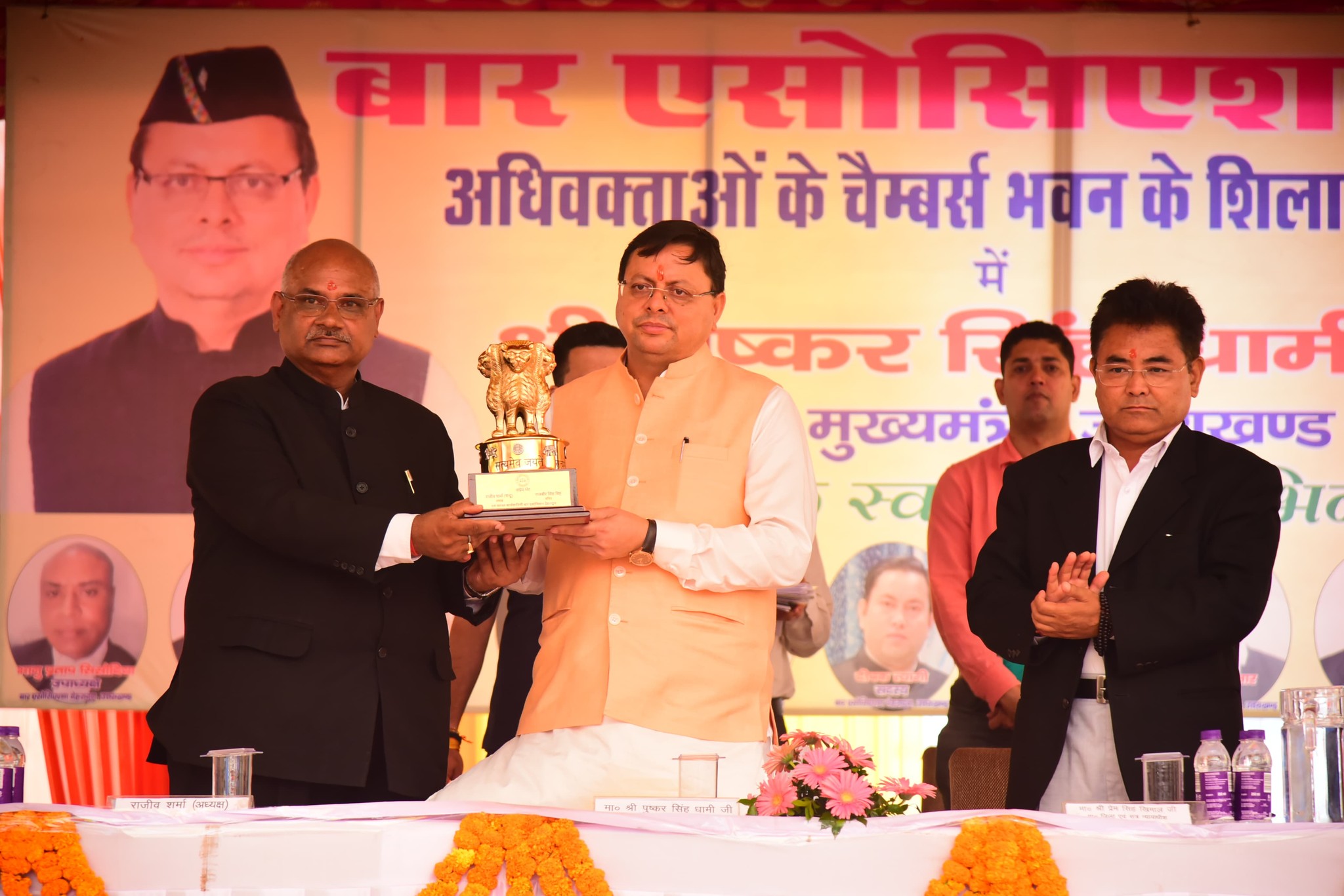 मुख्यमंत्री ने कहा कि यहां पर कुल साढ़े पांच हजार से ज्यादा लोग कार्यरत हैं, इसलिए सभी की समस्याओं को समझते हुए पांच बीघा जमीन बार एसोसिएशन देहरादून को देने का निर्णय लिया गया। मुझे खुशी है कि इस जमीन पर 1500 चैम्बर, एक ऑडिटोरियम, लाइब्रेरी, कैंटीन, पार्किंग से भरपूर नौ मंजिला भवन का निर्माण करवाया जाएगा।