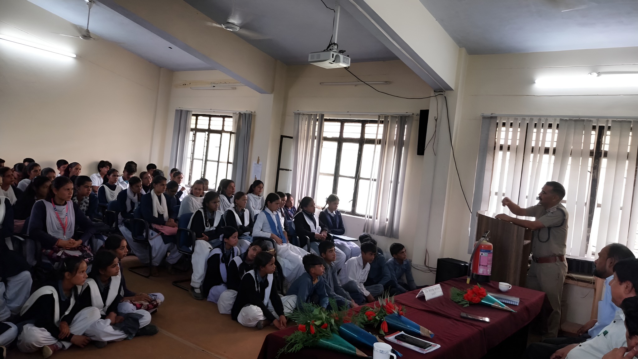 प्रभारी निरीक्षक द्वारा छात्रों को साइबर क्राइम, नशामुक्ति, सड़क सुरक्षा और महिला सुरक्षा जैसे महत्वपूर्ण विषयों पर जानकारी देते हुए बताया गया कि आज के डिजिटल युग में साइबर क्राइम एक गंभीर समस्या बन चुका है, और इससे निपटने के लिए सभी को जागरूक रहना चाहिए। उन्होंने बताया की वर्तमान समय में साइबर क्राइम के मामलों में बढ़ोतरी हो रही है, और इससे बचाव के उपायों को समझना अत्यंत आवश्यक है। छात्रों को अपने व्यक्तिगत जानकारियों को सुरक्षित रखने, संदिग्ध लिंक पर क्लिक न करने, और अनजान व्यक्तियों से बातचीत करते समय सतर्क रहने की जरूरत पर जोर दिया। नशामुक्ति विषय पर चर्चा करते हुए उन्होने कहा कि नशीले पदार्थों का सेवन युवा पीढ़ी के लिए एक बड़ी चिंता का विषय है। छात्रों को नशे के दुष्प्रभावों के बारे में जानकारी दी गई और उन्हें नशे से दूर रहने के लिए प्रेरित किया। इसके साथ ही, सभी को सड़क सुरक्षा के नियमों का पालन करने व महिलाओं के प्रति होने वाले अपराधों के संबंध में विभिन्न कानूनी जानकारियों साझा की गयी। जिससे छात्राओं को यह समझने में मदद मिली कि अपनी सुरक्षा के प्रति कानून की जानकारी का होना क्यों महत्वपूर्ण है।