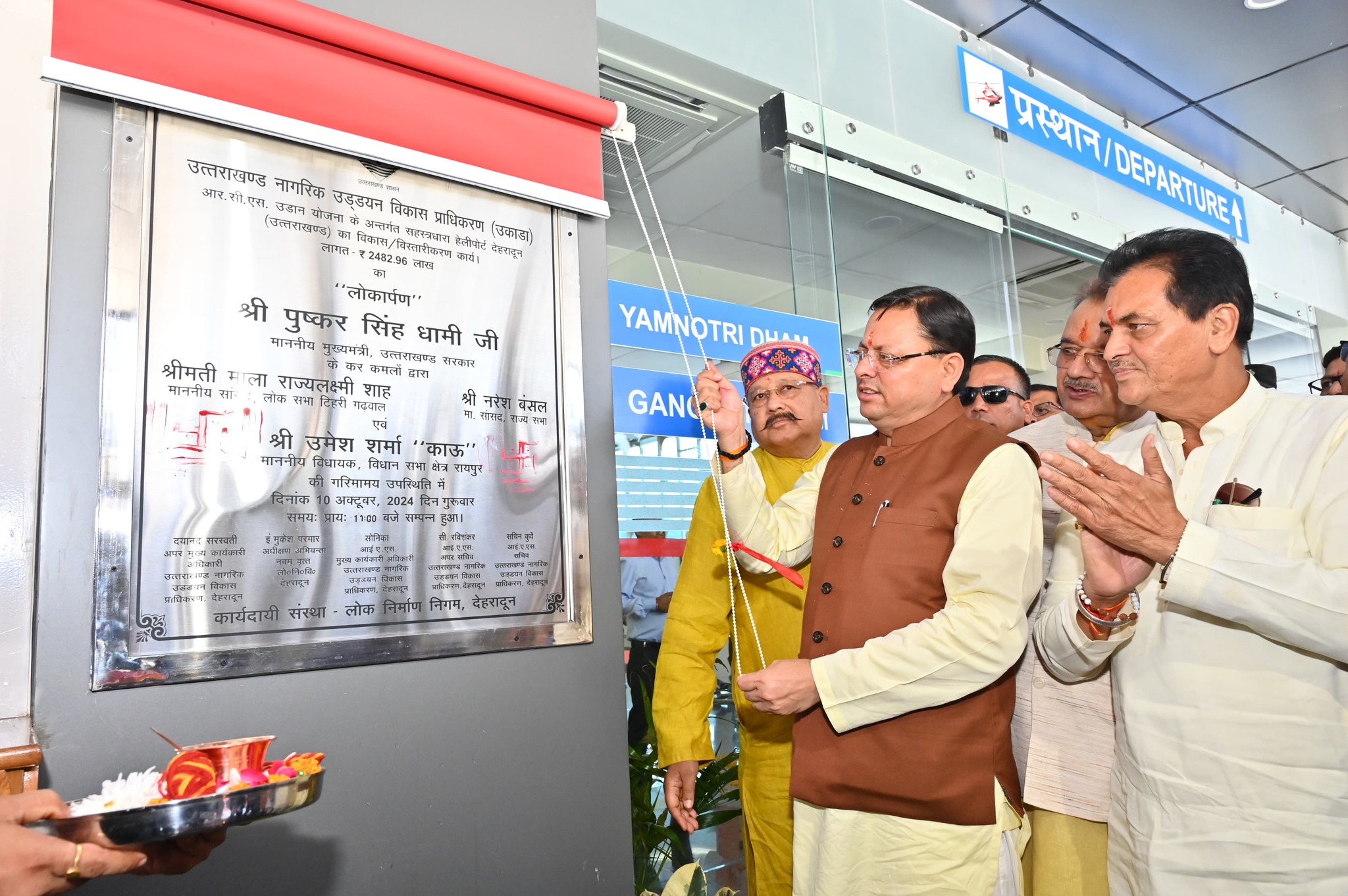 मुख्यमंत्री पुष्कर सिंह धामी ने आज सहस्त्रधारा हेलीपोर्ट पर बने ’पैसेंजर्स टर्मिनल भवन’ का लोकार्पण व ’देहरादून-अल्मोड़ा हेलीकॉप्टर सेवा’ का शुभारंभ किया