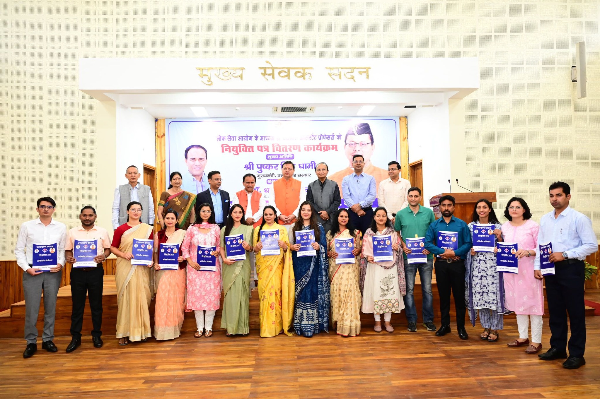 देहरादून-मुख्यमंत्री पुष्कर सिंह धामी ने आज मुख्य सेवक सदन में 05 विषयों के लिए चयनित 108 असिस्टेंट प्रोफेसर को नियुक्ति पत्र दिए। हिन्दी, रसायन विज्ञान, भूगोल, जन्तु विज्ञान एवं राजनीति विज्ञान विषयों के लिए चयनित अभ्यर्थियों को नियुक्ति पत्र प्रदान किये गये।