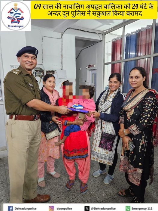 04 साल की नाबालिक बच्ची के अपहरण की घटना का 24 घंटे में दून पुलिस ने किया खुलासा