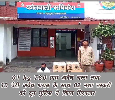 01 kg 780 ग्राम अवैध चरस तथा 10 पेटी अवैध शराब के साथ 02 नशा तस्करों को दून पुलिस ने किया गिरफ्तार