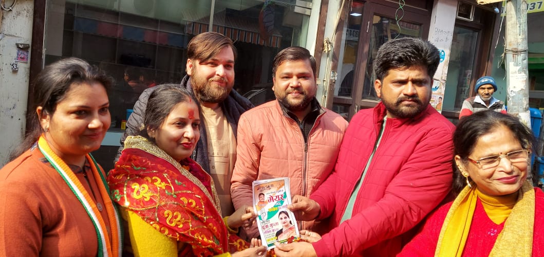 रुड़की।मेयर पद की प्रत्याशी पूजा गुप्ता ने मुख्य बाजार तथा अनाज मंडी में जनसंपर्क कर जीत के लिए लोगों का समर्थन मांगा।इस दौरान अधिकतर व्यापारियों ने कांग्रेस मेयर पद की प्रत्याशी पूजा गुप्ता का गर्मजोशी से फूल मालाएं पहनाकर स्वागत किया तथा लड्डू खिलाकर उन्हें जीत की शुभकामनाएं दी।पूजा गुप्ता ने कहा कि उनका मिशन केवल नगर को सुंदर व स्वच्छ बनाने का है।आज जो नगर की जनता का भरपूर प्यार व आशीर्वाद उन्हें मिल रहा है,तो उन्हें जीत भी निश्चित ही मिलेगी।उन्होंने कहा कि यदि नगर निगम की मेयर वे चुनी जाती है तो नगर हित के लिए जो कार्य कराए जाने हैं,उन पर वह खरा उतरेगी।उन्होंने जो भी वादे नगर की जनता से किए हैं,वह पूरे किए जाएंगे तथा नगर के विकास के लिए कोई कोरकसर नहीं छोड़ी जाएगी।इस दौरान बड़ी संख्या में समर्थक मौजूद रहे।