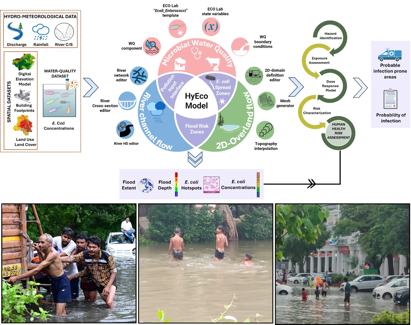 रुडकी।अपनी तरह का पहला मॉडलिंग ढाँचा बाढ़ मानचित्रण,सूक्ष्मजीवी जल गुणवत्ता सिमुलेशन एंव मात्रात्मक सूक्ष्मजीवी जोखिम मूल्यांकन (QMRA) को एकीकृत करता है।दिल्ली में 2023 की बाढ़ पर लागू, इस मॉडल ने सार्वजनिक स्वास्थ्य के लिए उच्च जोखिम वाले क्षेत्रों की पहचान की और असुरक्षित समुदायों की सुरक्षा के लिए उपायों का मार्गदर्शन किया।स्वच्छ भारत,स्वच्छ गंगा एंव आपदा तैयारी रणनीतियों जैसे राष्ट्रीय मिशनों का समर्थन करता है,जब्कि यह कई संयुक्त राष्ट्र सतत विकास लक्ष्यों (एसडीजी) के साथ संरेखित है।आईआईटी रुड़की एवं भारतीय प्रौद्योगिकी संस्थान रुड़की के शोधकर्ताओं ने हाईइको विकसित किया है,जो अपनी तरह का पहला एकीकृत बाढ़-जल गुणवत्ता मॉडलिंग प्लेटफॉर्म है,जो न केवल यह भविष्यवाणी करता है कि शहरी बाढ़ का पानी पूरे शहर में कैसे फैलेगा,बल्कि यह भी दर्शाता है कि संभावित रोग पैदा करने वाले रोगाणु बाढ़ के पानी में कैसे फैल सकते हैं और कहां लोगों के प्रभावित होने का सबसे अधिक खतरा है।इस नए ढाँचे का परीक्षण 2023 की दिल्ली बाढ़ पर किया गया,जो हाल के दिनों की सबसे भीषण बाढ़ों में से एक थी।परिणाम चौंकाने वाले थे।60% से ज्यादा बाढ़ग्रस्त क्षेत्र उच्च से लेकर अति-उच्च खतरे वाले क्षेत्रों में थे और पानी में हानिकारक बैक्टीरिया (ई०कोलाई) सुरक्षित सीमा से लाखों गुना ज़्यादा पाए गए।खास तौर पर बच्चों को बाढ़ के पानी में खेलते समय संक्रमण का खतरा अंतरराष्ट्रीय स्तर पर स्वीकृत सुरक्षा स्तर से दोगुने से भी ज्यादा था।कई भारतीय शहरों में बाढ़ का पानी अनुपचारित सीवेज और औद्योगिक कचरे के साथ मिलकर एक जहरीला मिश्रण बनाता है,जिससे डायरिया,हैजा और अन्य खतरनाक जल-जनित बीमारियाँ फैल सकती हैं।हाईईको अधिकारियों को इन खतरों को पहले से पहचानने, “स्वास्थ्य के लिए खतरा बने प्रमुख स्थानों” की पहचान करने और लोगों की सुरक्षा के लिए त्वरित कार्रवाई करने में सहायता कर सकता है,उदाहरण के लिए,सीवेज उपचार में सुधार करके,मानसून से पहले नालियों की सफाई करके,एसएमएस अलर्ट के जरिए निवासियों को चेतावनी देकर और उन्नत जल-शोधन विधियों का उपयोग करके।यह शोध भारत सरकार के प्रमुख मिशनों,जैसे राष्ट्रीय स्वच्छ गंगा मिशन,स्वच्छ भारत मिशन,राष्ट्रीय आपदा प्रबंधन योजना और राष्ट्रीय स्वास्थ्य मिशन को सहायता प्रदान करता है।यह संयुक्त राष्ट्र के कई सतत विकास लक्ष्यों (एसडीजी) को पूरा करने में भी मदद करता है,जिनमें एसडीजी-3 (उत्तम स्वास्थ्य और कल्याण),एसडीज-6 (स्वच्छ जल और स्वच्छता),एसडीजी-11(स्थायी शहर और समुदाय) और एसडीजी-13 (जलवायु कार्रवाई) शामिल हैं।आईआईटी रुड़की के जल संसाधन विकास एवं प्रबंधन विभाग के प्रोफेसर मोहित पी०मोहंती ने कहा 