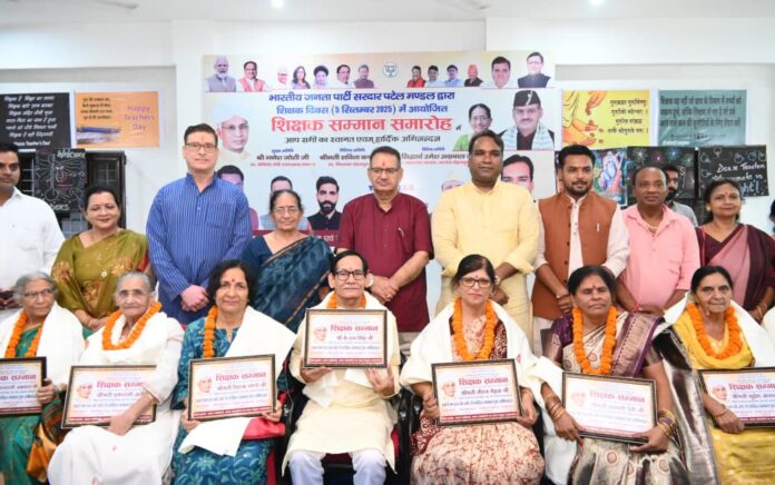 देहरादून, 05 सितम्बर। कैबिनेट मंत्री गणेश जोशी ने आज देहरादून जीएमएस रोड़ स्थित सामुदायिक भवन इन्दिरापुरम में भारतीय जनता पार्टी सरदार पटेल मण्डल कैंट विधानसभा द्वारा शिक्षक दिवस के अवसर पर आयोजित सम्मान समारोह कार्यक्रम में बतौर मुख्य अतिथि प्रतिभाग किया। इस अवसर पर मंत्री जोशी ने उत्कृष्ट कार्य करने वाले शिक्षकों को शॉल व स्मृति चिन्ह देकर सम्मानित किया।