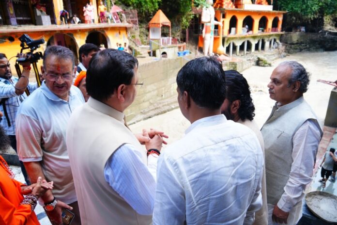 देहरादून। मुख्यमंत्री पुष्कर सिंह धामी ने आज टपकेश्वर महादेव मंदिर क्षेत्र में अतिवृष्टि से प्रभावित स्थल का निरीक्षण किया। अतिवृष्टि के कारण मंदिर के अंदर जलभराव के साथ ही मलबा आ गया था, मलबा हटाने का कार्य अब पूर्ण हो चुका है। इस दौरान मुख्यमंत्री ने मंदिर के पुजारियों और स्थानीय लोगों से बातचीत भी की।