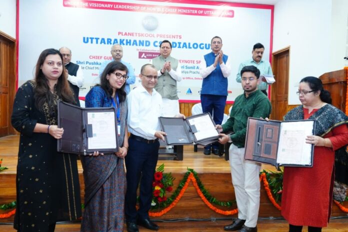 देहरादून -मुख्यमंत्री पुष्कर सिंह धामी ने आज शासकीय आवास में उत्तराखण्ड सी.एस.आर. डायलॉग कार्यक्रम में प्रतिभाग किया। इस अवसर पर उन्होंने मुख्यमंत्री आदर्श ग्राम सारकोट के प्राथमिक विद्यालय में डिजिटल क्लासरूम का वर्चुअल शुभारंभ भी किया। कार्यक्रम में एक्सिस बैंक समूह के साथ राज्य के 24 विद्यालयों के डिजिटलाइजेशन के लिए तथा टोयोटा के साथ पर्यावरण संरक्षण, शिक्षा, स्वास्थ्य एवं सामुदायिक सशक्तिकरण के क्षेत्र में सी.एस.आर. संचालित करने के लिए एमओयू किया गया।