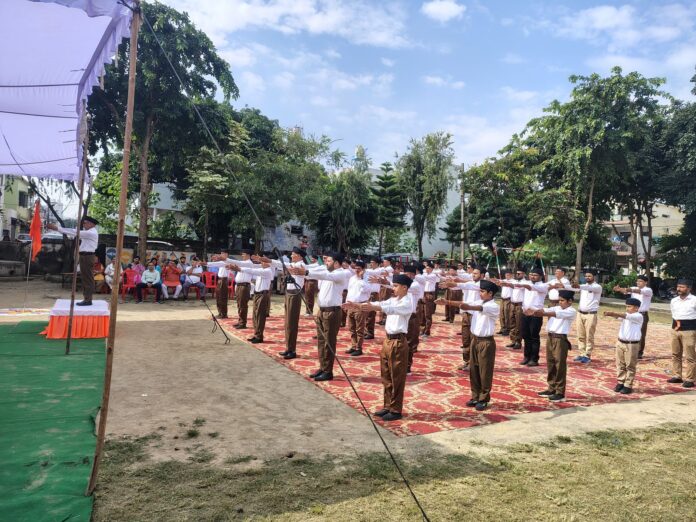 देहरादून -आर एस एस का शताब्दी संखनाद.आज सुभाष नगर की सुभाष,बस्ती मे संघ शताब्दी वर्ष और विजय दशमी कार्यक्रम मनाया,