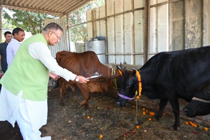 गोवर्धन पूजा के अवसर पर गौमाता का पूजन करते कैबिनेट मंत्री गणेश जोशी