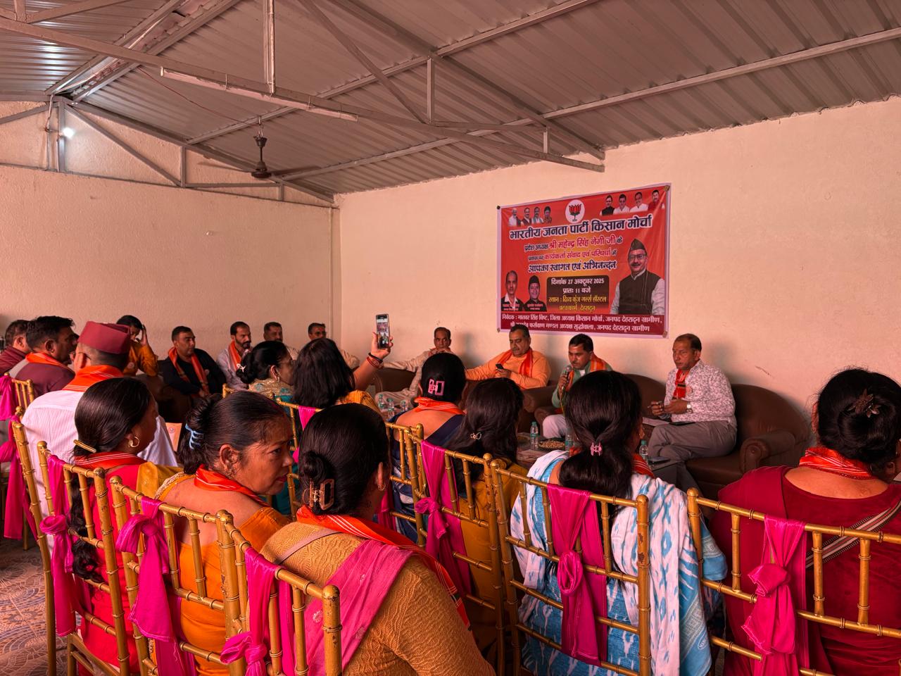 देहरादून -सोमवार को दिव्य कुंज गर्ल्स हॉस्टल अटकफार्म में भारतीय जनता पार्टी किसान मोर्चा के प्रदेश अध्यक्ष महेंद्र सिंह नेगी के प्रवास के अवसर पर कार्यकर्ता संवाद एवं परिचर्चा कार्यक्रम का आयोजन किया गया।