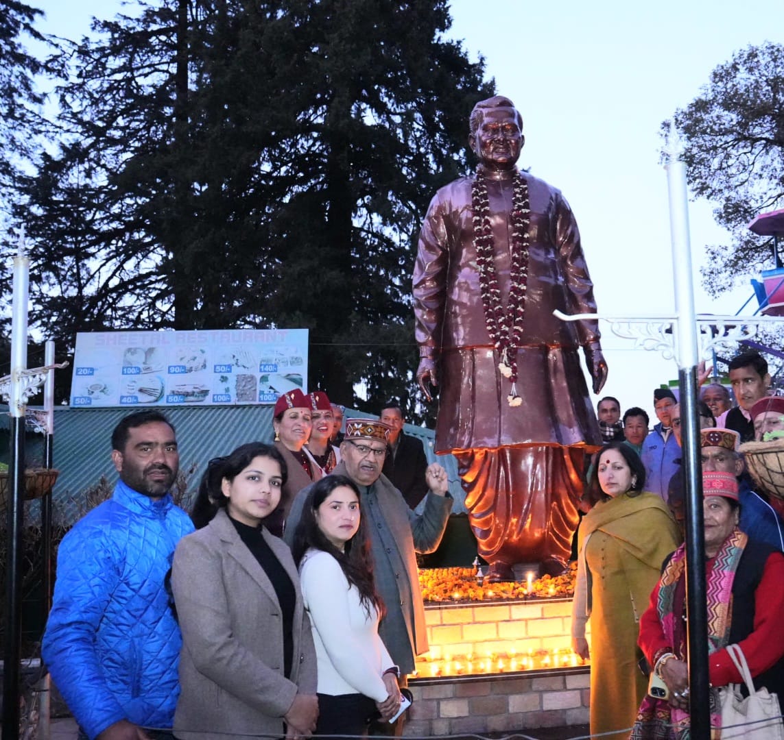मसूरी अटल उद्यान में पूर्व प्रधानमंत्री स्व. अटल बिहारी वाजपेयी की जयंती की पूर्व संध्या पर 101 दिए जलाकर उनको श्रद्धा सुमन अर्पित करते कैबिनेट मंत्री गणेश जोशी