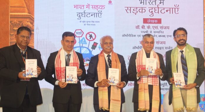 देहरादून!17 जनवरी 2026, राष्ट्रीय पुस्तक न्यास (एनबीटी) द्वारा विश्व पुस्तक मेला 2026 के अवसर पर भारत मंडपम, प्रगति मैदान, नई दिल्ली में 16 जनवरी 2026 को पुस्तक ‘भारत में सड़क दुर्घटनाएँ’ का भव्य लोकार्पण किया गया। पुस्तक का लोकार्पण एनबीटी के अध्यक्ष प्रो. मिलिंद सुधाकर मराठे, निदेशक श्री युवराज मलिक, उत्तराखंड उच्च न्यायालय के सेवानिवृत्त न्यायाधीश श्री लोकपाल सिंह, एम्स गुवाहाटी के अध्यक्ष प्रोफेसर डॉ. बी. के. एस. संजय, पुस्तक के सह-लेखक एवं ऑर्थोपीडिक सर्जन एवं रोड सेफ्टी एक्टिविस्ट डॉ. गौरव संजय, और कार्यक्रम के संचालक डॉ. ललित किशोर मंडोरा द्वारा किया गया। यह पुस्तक भारत में सड़क दुर्घटनाओं की भयावह स्थिति, उनके चिकित्सीय, सामाजिक एवं आर्थिक प्रभावों का विस्तृत और तथ्यात्मक विश्लेषण प्रस्तुत करती है तथा सड़क सुरक्षा के प्रति जन-जागरूकता और प्रभावी रोकथाम की आवश्यकता पर बल देती है।