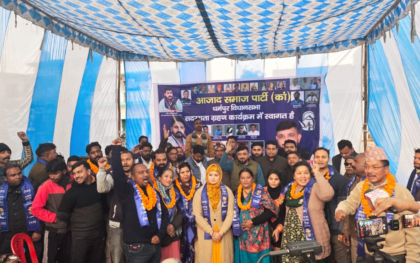 देहरादून-धर्मपुर विधानसभा में आजाद समाज पार्टी का बढ़ रहा जनाधार भाजपा कांग्रेस के सैकड़ों लोगों ने ली सदस्यता, आज धर्मपुर विधानसभा में आजाद समाज पार्टी योगेन्द्र चौहान के नेतृत्व और प्रदेश अध्यक्ष महक सिंह जी की मौजूदगी में मोहव्वेवाला और भारुवाला के कांग्रेस के कई पूर्व बीडीसी मेंबर और वार्ड मेंबर्स सहित सैकड़ों लोगों ने पार्टी की रिती निती और राष्ट्रीय अध्यक्ष नगीना चंद्रशेखर आजाद के कार्यों से प्रभावित होकर सदस्यता ग्रहण की बैठक का संचालन सुशील सैनी ने की।