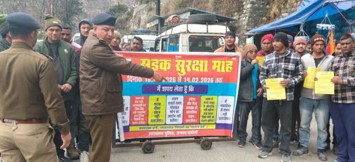 चमोली-सड़क सुरक्षा माह के अवसर पर चमोली टैक्सी यूनियन में जागरूकता अभियान, यातायात पुलिस द्वारा चलाया गया विशेष जन-जागरूकता कार्यक्रम, टैक्सी चालकों और आमजन को किया गया यातायात नियमों के प्रति जागरूक, सड़क सुरक्षा माह के अंतर्गत आज चमोली टैक्सी यूनियन परिसर में यातायात पुलिस चमोली द्वारा एक व्यापक जन-जागरूकता अभियान का आयोजन किया गया।